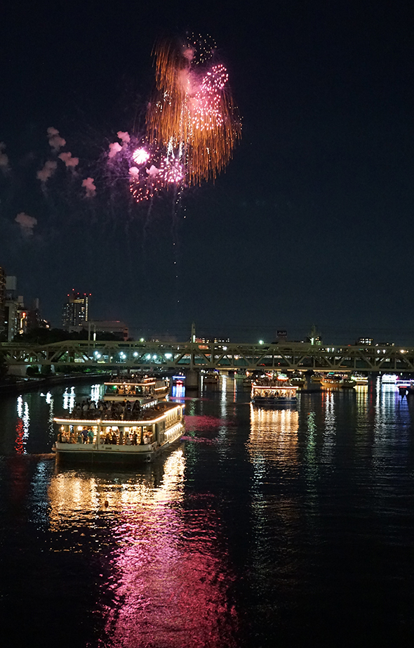 Sumida River Fireworks Festival, which is held annually at the end of July, is one of the biggest fireworks festivals in Tokyo, and gathers nearly 1 million visitors every year. It is also covered live on television. Fireworks are shot off from two venues, competing with each other: the first one set on a venue between the Sakura and Kototoi Bridges across the Sumida River and the second one between the Komagata and Umaya Bridges. The festival is a popular attraction in summer in Tokyo, and marked its 40th anniversary in 2017 since it was resumed in 1978.