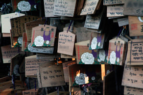 여러 나라 사람들의 소원이 쓰인 말 그림 액자가 걸려 있습니다. (우에노 도쇼구)