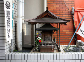 The Benzaiten was originally enshrined in the neighborhood, but there were fewer places to enshrine it after the war, so people in the neighborhood somehow managed to continue to enshrine it. However, there was nowhere left to enshrine it due to the Road Traffic Law, so Benten-yu took responsibility for enshrining it. Now, buildings stand here, but, in the past, there was a shrine. I think Benten-yu was named after the Benzaiten. (continued in the lower column)