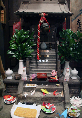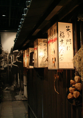 一階の展示は、震災前の生活を後世に残していこうという展示方針に基づいています。生活空間に実際に使われていたものを置くことによって、情景展示として、その意図を表しています。二階では昭和30年頃の一画があり、一階の展示との生活の差違が分かるようになっています。さらに当時の実物を置いて、見るだけではなく触ることができ、質感や使い勝手も合わせて伝えています。さらに季節の催しといった年中行事のように具体的な形を成してないものも展示できます。現在展示しているのは初午(はつうま)です。長屋の軒先に地口行灯(じぐちあんどん)を飾り、路地の奥には稲荷があることから、初午が稲荷の祭りであることが分かります。(次ページに続く)