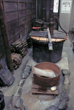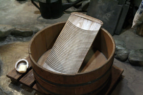 手汲みのポンプ、洗い桶に洗濯板に懐かしさがよみがえります。