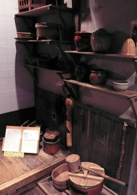 台所の板の間には、揚板(あげいた)があり、用具や食物の貯蔵庫にも使われていました。