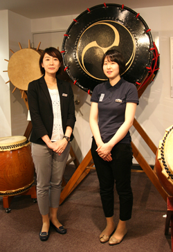We talked with Kozue Koriyama (left), the planning and public relations office, Miyamoto Unosuke Shoten, and Nozomi Iida (right), a curator at the Drum Museum.