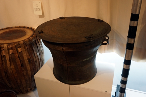太鼓は、一般には胴に皮を張っていますが、中には例外もあり、皮の部分が金属でできたものもあります。これは「フロッグ・ドラム(銅鼓)」と呼ばれています。