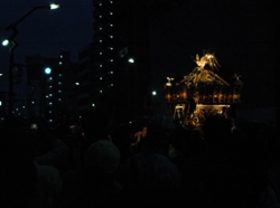 正如人們所說的那樣鳥越祭禮是“夜中祭禮”,早晨大神轎“千貫神輿”從鳥越神社出發,遊行到每個街道會,天稍一擦黑,人們立刻為其掌上亮華麗的燈籠。到了傍晚在它返回鳥越神社的時候,祭禮活動才真正迎來了祭禮的高潮。