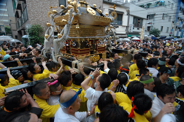 Torikoe Jinjya(Shito Shrine) Night Festival is famous for "Sengan Mikoshi," a big portable shrine. It was customary that the festival was held on June 9, but, in the present, the portable shrine is paraded on the nearest Sunday to June 9 due to transportation situations. The year 2012 was the 100th anniversary of the foundation of "Mutsumi-kai,” a group responsible for carrying out the festival, and 21 portable shrines from 23 towns participated in the festival. Lanterns, on which names of each town were written, were attached to each portable shrine. The names of towns were also vividly written on backs of happi coats. On the last day of the festival, "Sengan Mikoshi(portable shrine)" departed from Torikoe Shrine at 6:30 a.m., and spent all day to proceed through parishioners' towns as it was welcomed at each town. In the early evening, when it grew dim, lanterns, attached to the "Sengan Mikoshi", were lit, and the festival came to a climax "Miyairi," in which the portable shrine was carried back to the shrine by Mutsumi-kai. The movements of the portable shrine, which proceeded with wavering lantern lights in the dark while being observed by many spectators, were the highlight of the festival. The scene has been a seasonal tradition in the downtown. The festival and all the other related things have been organized by "Ujiko Keishinkai" and "Torikoe Shrine Jyu-hakka-cho Mutsumi-kai" and have been also supported by parishioners. The tradition has been handed down from generation to generation.