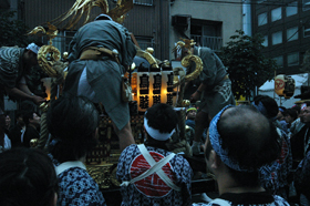 도리고에 축제가 ‘밤 축제’라고 불리는 것과 같이, 새벽에 도리고에 신사를 출발한 큰 미코시 ‘센간 미코시’가 각 쵸카이를 돌며, 점점 해가 짐에 따라 초롱으로 화려하게 장식됩니다. 그리고 저녁에 도리고에 신사에 미야이리할 즈음, 축제는 드디어 클라이맥스를 맞이하게 됩니다.