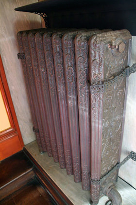 在西洋館的大廳裏,擺放著仿古的燃氣取暖器。從其新藝術(Art Nouveau)風格的裝飾上能夠感覺到其格調。