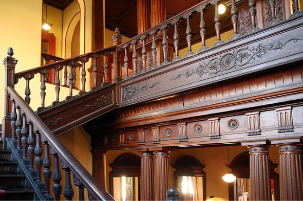 通往二层象回廊似的台阶也是采用了西方传统的詹姆斯风格(Jacobean Style)的设计。