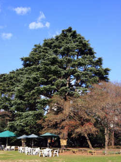 庭園のシンボルでもあるヒマラヤスギの大樹