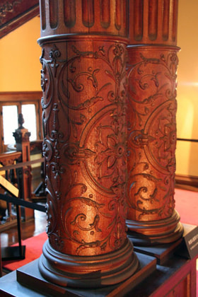 二階へと上がる回廊にも似た階段にもジャコビアン様式の意匠が見受けられます。
