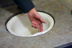 トイレットのシンクには排水口がなく、シンクの手前を持ち上げて排水する珍しい体裁です。