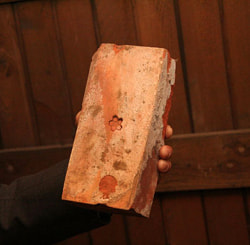 洋館の基礎の煉瓦には、当時の刑務所で製造された証の桜の紋が刻印されていました。