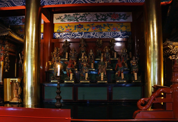 기요미즈 관음당은 우에노 전쟁의 화를 면했지만 오랜 세월에 걸친 분향 등으로 당내는 검게 그을려있었고, 헤이세이 2년(1990)의 해체와 수복 공사를 거쳐 원래의 주색과 검정, 그리고 금색의 선명한 색조가 되살아났습니다.