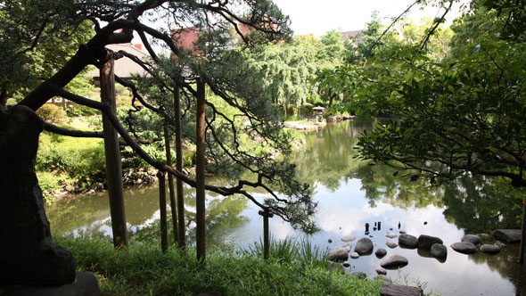 傳法院庭園是一座不公開秘園,不光是建築,這裏的植物和自然環境也都具有寶貴價值。現在,庭園的背景中又增添了東京天空樹(2012年竣工的東京新電視塔,高634米),展現著新與舊的完美結合。