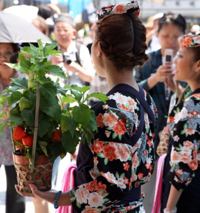 每月18日淺草寺有觀音廟會,此外從室町時代開始又設置了新的節慶日叫做“功德日”。每個月如果選這一天來參拜的話,就能獲得相當于一百天,一千天的功德。7月10日被稱作“四萬六千日”,其功德就是4萬6千日,相當于大約126年的功德。四萬六千日的由來,據說是因爲裝滿一升枡(古代的一種量器,可裝一升的米或酒等物。)的米需要大約46000顆米粒,于是用一升比作一生。參拜者們借此祈禱長壽和無病無災。