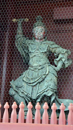 二天门位于面向浅草神社大门的右侧,是国家的重要文物。它的这种特殊形式和施工方法一般认为是1649年(庆安2年)前后建造的。而且,现在的二天王像是从上野宽永寺的岩有院(德川第四代将军德川家纲)祠堂拜请过来的,增长天和持国天是佛教的守护神四天王中的二位,他们身着戎装,增长天守护南方,持国天守护东方。