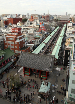 鎌倉・室町時代の中世には、現在の浅草界隈は東京湾に面した地域でした。当時は湾に面し隅田川に続いていた事から、全国各地から船や物資が集散し、多くの人が出入りする要の地域として拓けていたようです。