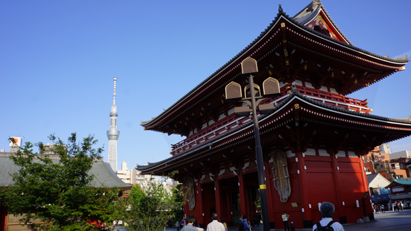 덴케이 5년(942)에 다이라노 킨마사에 의해 창건된 것으로 전해지고 있지만 건립 당시에는 코마가타 부근에 있었던 것으로 알려졌습니다. 가마쿠라 시대 이후에 현 장소로 옮겨지고 풍신과 뇌신이 놓였습니다. 현재 문은 게이오 원년(1865)의 대화재로 소실된 후, 1960년에 마쓰시타 전기 창립자인 마쓰시타 고노스케 씨의 기부로 부흥 재건되었습니다. 지금은 도쿄 아사쿠사의 상징이기도 합니다.