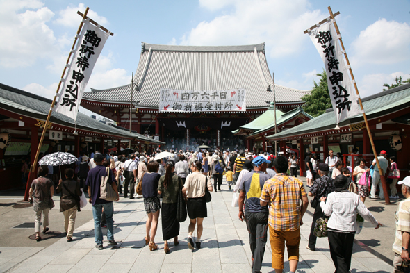 관음의 젯날은 매월 18일이지만, 그것과는 별도로 무로마치 시대 무렵부터 새롭게 ‘구도쿠비’(공덕일)가 정해졌습니다. 한 달에 한 번인 이날에 참배하면 백일, 천일 참배한 것에 해당하는 공덕이 쌓인다고 전해집니다. 7월 10일은 ‘시만로쿠센니치’(사만 육천일)라고 하여 그 공덕은 4만 6천일, 약 126년분에 상당한다고 합니다. 시만로쿠센니치의 유래는 한 되를 채우는 쌀알이 사만 육천 톨 정도라 하여 ‘잇쇼’(한 되)와 ‘잇쇼’(일생)를 빗대었다는 설도 있습니다. 참배자의 무병장수에 대한 염원이 느껴집니다.
