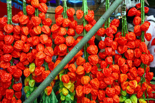 시만로쿠센니치에는 ‘호오즈키 이치’(꽈리 장)가 젯날에 활기를 더합니다. 꽈리는 통째로 삼키면 복통(기생충 등에 의한)을 가라앉히고 아이의 병을 낫게 한다고 하여 약초로도 사용되어왔습니다. 센소지의 꽈리 장은 점차 번화하여 이제는 시만로쿠센니치라 하면, 꽈리 장을 연상케 합니다. 에도 시대의 문화 년간(1804-18)에는 피뢰의 효험이 있다고 하여 붉은 옥수수가 점포에 깔리고, 사람들은 이것을 문 앞에 매달았는데 메이지 시대에 들어서면서 붉은 옥수수가 흉작이 되어 센소지에서 꽈리가 ‘피뢰’를 대신하게 되었습니다.