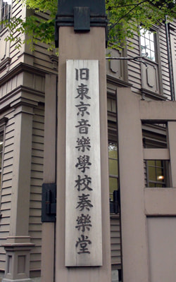 旧东京音乐学校奏乐堂,在明治23年(1890)作为日本首次为音乐会专用的演奏会场建造的,那个时代往往被称为日本迈向近代化社会的起步期。奏乐堂饱经岁月风雨受到了很大破损,曾经有将其分解拆毁的意见,也有要将其移建到爱知县犬山市的明治村(从日本各地移建了各种明治时期的代表建筑形成了主题公园,包括东京大地震中幸存下来的由美国建筑师莱特设计的帝国饭店而闻名)的意见。最终经过将它移建到作为日本近代音乐的发祥地上野的保存活动,奏乐堂最终移建在上野公园,从它的外观到室内,都能引起人们对其漫长历史的缅怀。