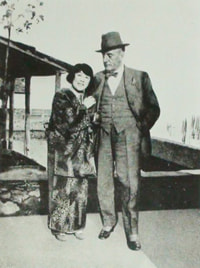 Composer Giacomo Puccini (1858-1924) saw "Madama Butterfly" performed in Rome, and invited Miura to his mountain villa near Lucca. This picture was taken on April 19, 1920, in front of Puccini's villa at Torre del Lago.