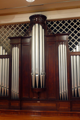 古めかしい表情からも時代が感じられます。旧奏楽堂の移築に伴い、破損が著しかったオルガンも華麗によみがえりました。