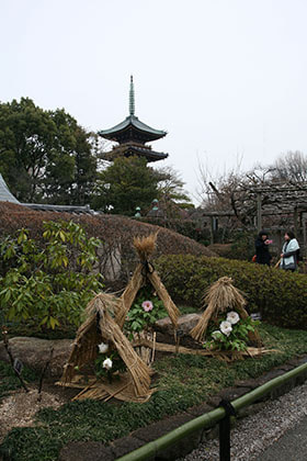 간에이 8년(1631)에 사쿠라 번주 도이 도시카츠의 기부로 건립된 우에노 도쇼구의 오층탑은 이후 간에이 16년(1639)에 소실되면서 재건되었지만, 메이지 시대의 신불 분리(신불판연령) 정책으로 철거까지 검토되는 등의 우여곡절을 거쳐 간에이지에 귀속되면서 현재는 우에노 동물원에 그 모습을 유지하고 있습니다. 높이 33m, 1층에는 약사, 아미타, 미륵, 석가 사존이 안치되어 있습니다. 쇼와 33년(1958)에 도쿄도에 기증되었습니다. (하단에 계속)