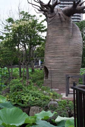 指狐猴住的樹林在西園的不忍池附近,是模仿節尾狐猴和指狐猴居住的馬達加斯加的森林來制作的。