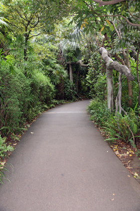 The "woods where aye-ayes live," located beside Shinobazuno Pond in the West Garden, reminds visitors of a forest in Madagascar where ring-tailed lemurs and aye-ayes live.