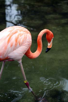 서원의 플라밍고는 자연을 재현한 연못을 느긋이 산책하고 있습니다.