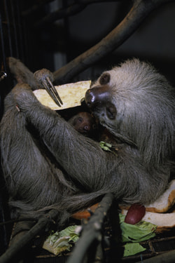 번식에 성공한 호프만나무늘보 어미와 새끼(2002년)