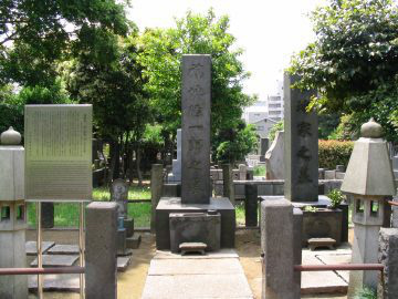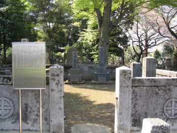On the literary side, Genichiro organized the Kabuki-za with Ichikawa Danjuro, Kawatake Mokuami, and others. As well as concerning himself with ways of bettering stage play, he wrote the history books, "Bakufu Suibouron," "Bakumatsu Seijika," and others. Even today, he is still highly regarded. On January 4, 1906, passed away at the age of 66. On the front of the tomb, "Fukuchi Genichiro Tomb," on the side, his and his wife, Satoko's, posthumous Buddhist names are engraved.