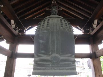 The bell, approx 48 inches high and 30 inches in diameter, was created by Shina Yoshihiro, a member of the renowned Shina family. The Shina family was famous smith for their copper works in the latter half of 1600s. Number of pieces produced by them remained to this day. Yoshihiro made a major contribution with his craftsmanship circa 1681-1700. 26 pieces by him exist today, including 19 copper bells, 2 pairs of copper lanterns, a basin, and a pagoda. The pagoda is of special note as it is the tomb of Tokugawa Ietsuna, located at Kan-eiji Temple in Ueno. Ietsuna was the 4th lord of Tokugawa Clan and the Shogun. The fact that Yoshihiro was chosen to build Shogun's tomb tells that he was the copper craftsman with outstanding skill in his time.