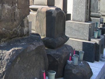 二基の墓のうち、向かって右側が庄右衛門の墓。笠付きの角石墓塔で、梵字の下に楷書で、「玉川本家先祖代々」とあり、さらに「隆宗院殿贈従五位正誉了覚大居士」の戒名が刻んである。