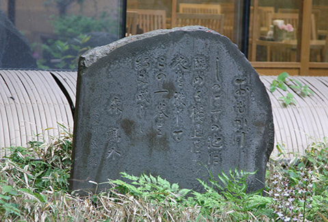 舞姫の碑とともに建てられた、於母影の碑。文学碑はどちらも当時の玄関の石が用いられています。