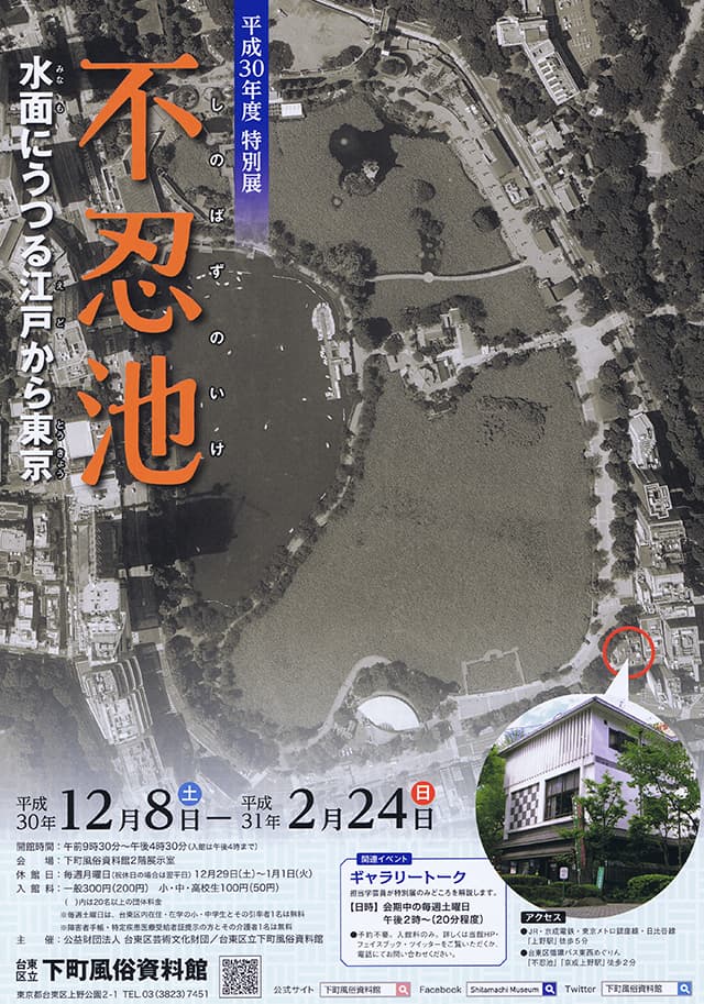 Q:貴資料館で平成30年(2018)に開催された「不忍池─水面にうつる江戸から東京」展では、不忍池の歴史等についても紹介されていますが、不忍池界隈はどのように形成されたのでしょうか。鴎外の代表作『雁』には、無縁坂の南側の岩崎邸、上野広小路の情景が書かれていますが、この界隈は今日でも変わっていないのでしょうか。