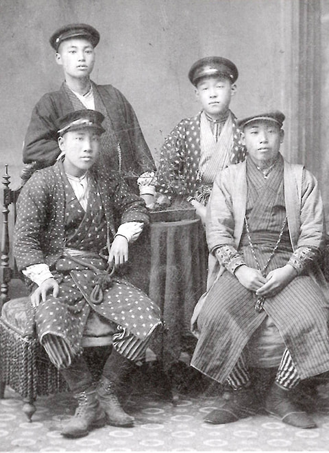 丈の長い書生羽織を着た学生たち(明治30年頃、『台東区立下町風俗資料館 図録』から)