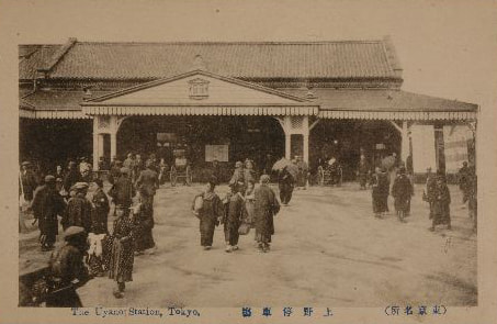 明治38年(1905)の上野駅南口。上野駅は明治16年(1883)の開業以来、東京の交通の要所として重要な役割を果たしてきました。(『台東区立下町風俗資料館 図録』から)