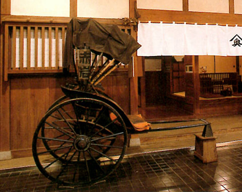 明治期の近代化には、その多くが欧米から輸入されましたが、人力車は国内で誕生しています。小説『ヰタ・セクスアリス』では、主人公が料亭からの帰りに人力車を遣う情景が描かれ、物語の展開に大きく関わる事になります。(『台東区立下町風俗資料館 図録』から)