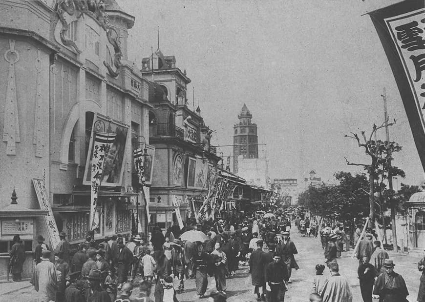여동생 키미코가 에자키 사진관에서 사진 촬영 후 귀갓길에 상점가에서 차 도구와 선물을 샀다. 「위타 · 섹스아리스」에는 하인과 함께 방문하는 묘사가 있다. 메이지 6년(1873)에 아사쿠사 공원으로 제정되면서 제6구 일대는 번화가로서 붐볐다.