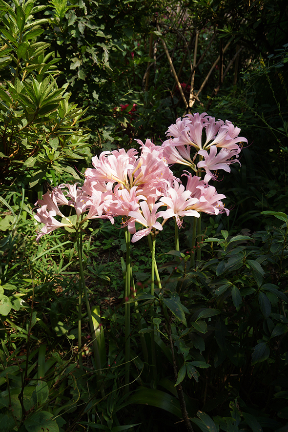 在子規庵的庭院裏,子規的妹妹律和朋友們爲了寬慰病床上的子規,精心種植了各種各樣的草木。在《小園之記》中有小園的配置圖,用俳句記載著每一棵草木所在的位置。椎樹、竹子、松樹、胡枝子、芒草、雞冠花、桔梗、牽牛花、秋海棠、紫茉莉、葉雞冠、百日草等。松葉牡丹別名也叫日照草,這兩個名字都出現過。這個時候,子規喜歡的薔薇和後來成爲子規庵象征的絲瓜,都還沒有種,絲瓜棚是在1901年搭建的。