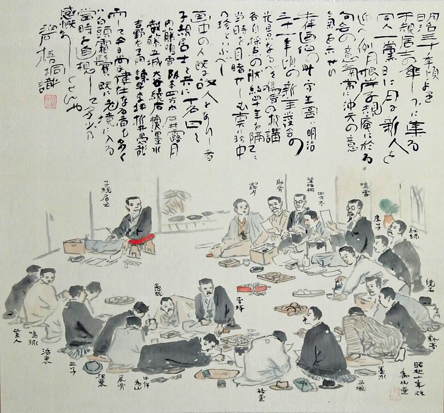 「시키암 구회 사생도」 그림: 시모무라 이잔 글: 가와히가시 헤키고도 (쇼와 10년(1935), 시키암 기탁 자료)