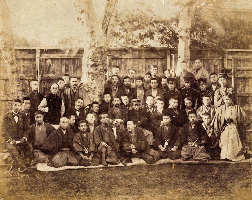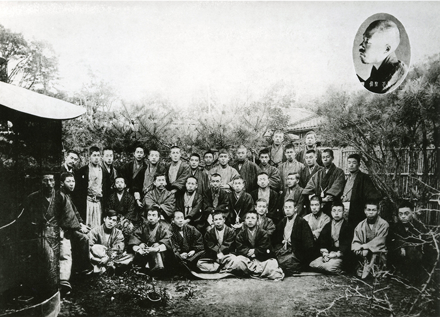 시키암의 툇마루에서의 기념 촬영, 시키는 가운데 줄 중앙에 앉아 있습니다. 시키는 요사 부손에 심취하여 「하이쿠 부손」, 「하이카이 다이요」등을 저술하고 서양 미술의 사생을 원용한 사생주의를 확립했습니다. 이러한 성과는 하이쿠집「호토토기스」나 시키의 사생주의에 감명받은 시인이자 소설가인 나가츠카 타카시가 참여하면서 단가집 「아라라기」의 창간으로 이어졌습니다.