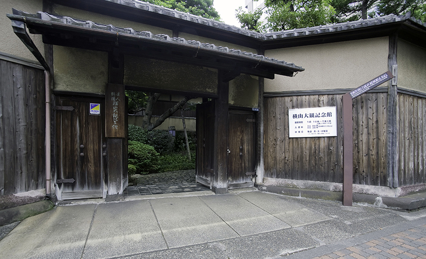 横山大观(1868-1958)的一生历经了明治、大正与昭和三个时期,他是日本画坛的泰斗人物,为后世留下了数量丰富的作品,是台东区评选出的第一位名誉区民。横山大观纪念馆面向不忍池池之端,在大观的遗言中欲将私邸对日本美术界有所贡献,于是有了这座公益财团法人横山大观纪念馆对外公开和运营。该纪念馆于1995年(平成7)被载入台东区区民文化遗产名录。在这里,可以随处感受到大观的思想与感性,体会到大观亲自指导建造的私邸的特色,这里也是大观实际进行创作的场所,很多场景素材都曾多次出现在他的作品中。2017年(平成29)2月,“横山大观旧宅以及庭园”被指定为国家的史迹·名胜。(台东区池之端1-4-24)