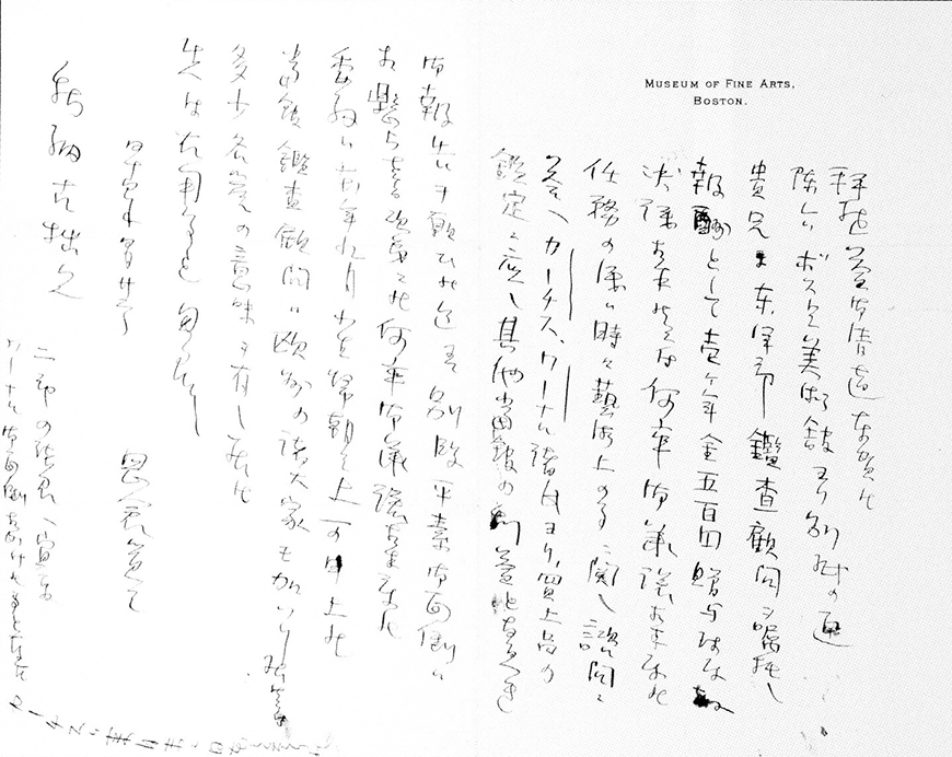 他感謝高村的款待、委托新納去富山。書信的背面寫著“東京谷中日本美術院岡倉覺三”。