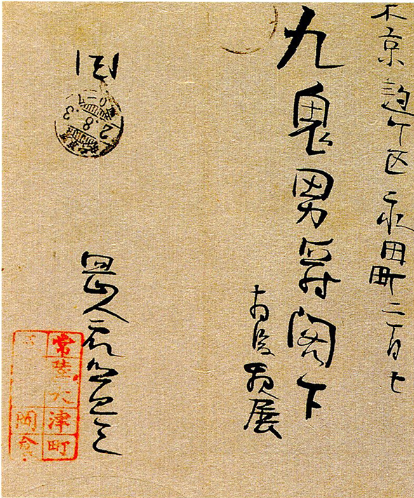 這是搬到茨城縣五浦之後的書信。上面寫著“常陸國大津町五浦岡倉覺三”。