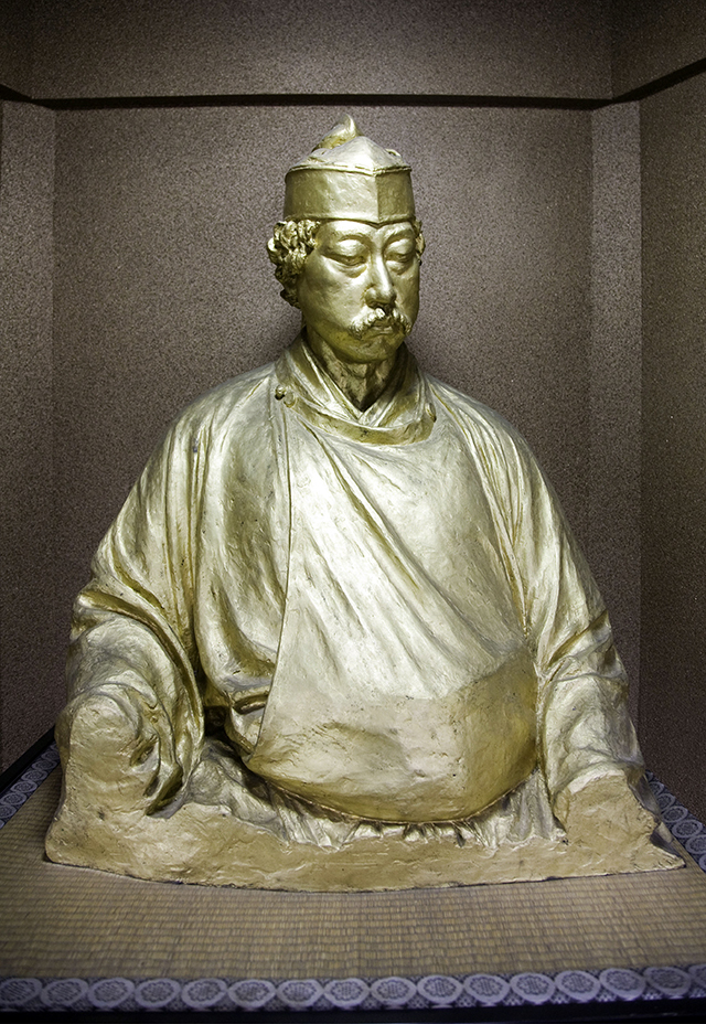 冈仓天心(冈仓觉三、1863-1913),出生在横滨,就读于东京开成学校(现东京大学),在学校学习期间受到同校讲师费诺罗萨(Ernest Francisco Fenollosa,1853-1908)的美术理论的强烈影响,和费诺罗萨一起被文部属派到海外去考察欧美美术,在1890年(明治23)继第一代校长滨尾新之后,冈仓天心被任命为东京美术学校的第二任校长。当时学校拥有费诺罗萨、黑川真赖、桥本雅邦、高村光云、川瑞玉章、巨势小石、狩野夏雄等教员,冈仓天心奠定了该校实质性的教育基盘,后来又有黑田清辉、藤岛武二、和田应作、冈田三郎助等教员相继就任于西洋画专业和图案专业。天心于1898年(明治31)离开学校,与桥本雅邦、横山大观、下村观山、菱田春草等结成了日本美术院。这个过程也可以说证明了当时日本美术界正处在与东洋传统的碰撞和来自西洋新风潮影响的矛盾和夹缝之中的现状。在东京艺术大学美术学部的校园里建有为纪念冈仓天心的六角堂,里面的天心像出自平栉田中之手。