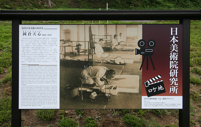 受当时文部省图画调查会的委托,冈仓天心与费诺罗萨一起对古寺庙神社进行了文物调查,其中法隆寺梦殿(八角圆堂)秘佛开龛的经历,据说是天心后来亲自修建六角堂(观澜亭)的主要原因。